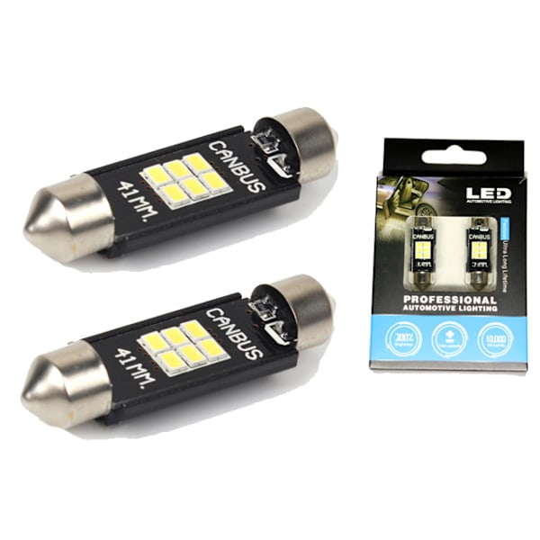 Byt ut de traditionella glödlamporna mot modern och effektiv LED -teknik. Iom med inbyggd canbus så larmar inte nyare bilar för “trasig lampa”. Finns med 31mm, 36mm, 39mm och 42mm här hos Xenonkungen. Lampsockel C5W eller SV8.